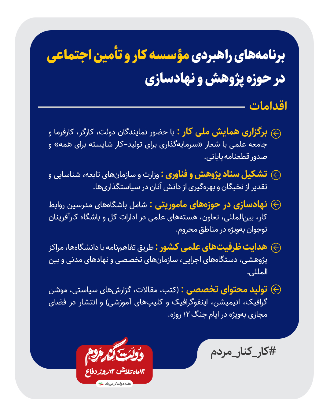 برنامههای راهبردی موسسه کار و تامین اجتماعی در حوزه پژوهش و نهادسازی